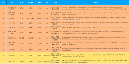 15款创新药包括10款已上市产品:注射用瑞康曲妥珠单抗(艾维达®,研发代号:SHR-A1811)、注射用卡瑞利珠单抗(艾瑞卡®)、苹果酸法米替尼胶囊(艾比特®)、甲磺酸阿帕替尼片(艾坦®)、马来酸吡咯替尼片(艾瑞妮®)、阿得贝利单抗注射液(艾瑞利®)、羟乙磺酸达尔西利片(艾瑞康®)、氟唑帕利胶囊(艾瑞颐®)、瑞维鲁胺片(艾瑞恩®)、海曲泊帕乙醇胺片(恒曲®),以及5款未上市产品,包括KRASG12C抑制剂HRS-7058、KRASG12D抑制剂HRS-4642、选择性的AR-PROTAC(雄激素受体-蛋白降解靶向嵌合体)小分子HRS-5041、抗PD-L1/TGF-βRII双抗瑞拉芙普-α注射液(SHR-1701)、Trop-2 ADC SHR-A1921。2类新药盐酸伊立替康脂质体注射液(II)(越优力®)及国内首仿药昂丹司琼口溶膜(艾其速®)各有1项研究入选。本文特对研究成果做了梳理,带领各位读者领略尊龙凯时人生就是博医药创新之光。