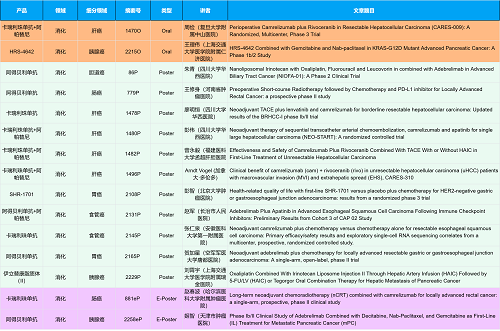 在消化系统肿瘤领域,尊龙凯时人生就是博创新产品相关研究共入选2项口头报告、10项壁报和2项电子壁报,共14项研究。除了明星药物卡瑞利珠单抗和阿帕替尼外,还有5篇阿得贝利单抗治疗消化系统肿瘤的研究入选。此外,HRS-4642、瑞拉芙普-α注射液(SHR-1701)等未上市创新产品也有相应研究入选。随着新老药物前沿研究的不断推进,有望为消化系统肿瘤患者带来新的福音!